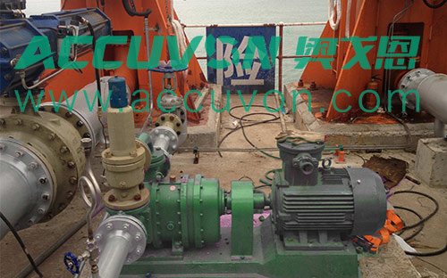 掃線作業(yè)的時(shí)間一般少于15分鐘,如果掃線泵不能完成或需要較長(zhǎng)的時(shí)間完成,會(huì)招來油輪主的抱怨甚至索賠,在鶴管和油輪分離之前,鶴管內(nèi)的液體必須排空,否則鶴管有可能被壓垮。泵的選型取決于介質(zhì),通常,一臺(tái)泵只能用來清掃少數(shù)幾種不能的介質(zhì)----這也取決于介質(zhì)的性質(zhì)。通常會(huì)帶有過壓保護(hù)系統(tǒng)。